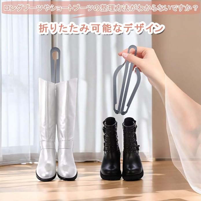 【収納が簡単】ロングブーツやショートブーツの整理方法がわからないですか?折り畳み式ブーツスタンドは、ブーツを垂直にサポートするだけでなく、どこにでも簡単に吊るすことができ、収納の問題を解決します。