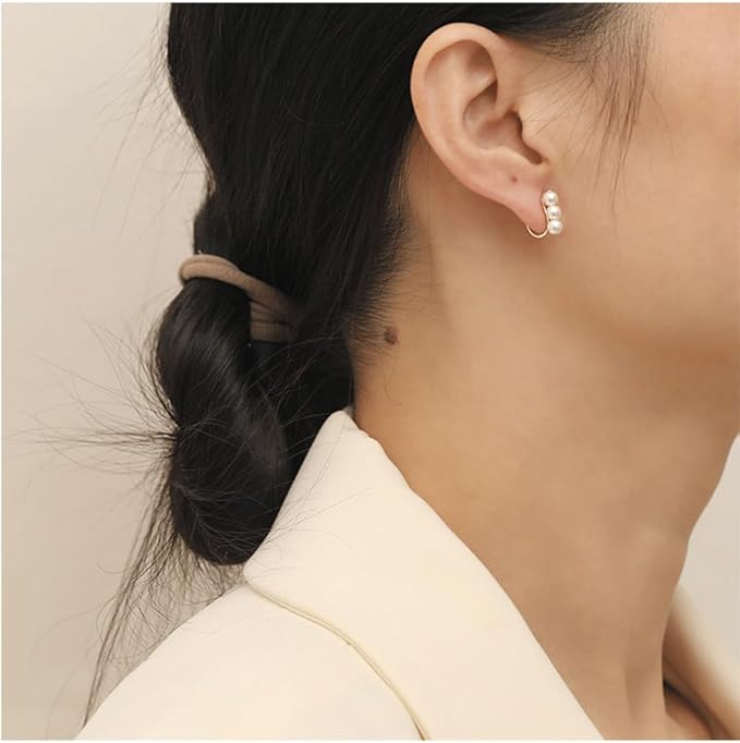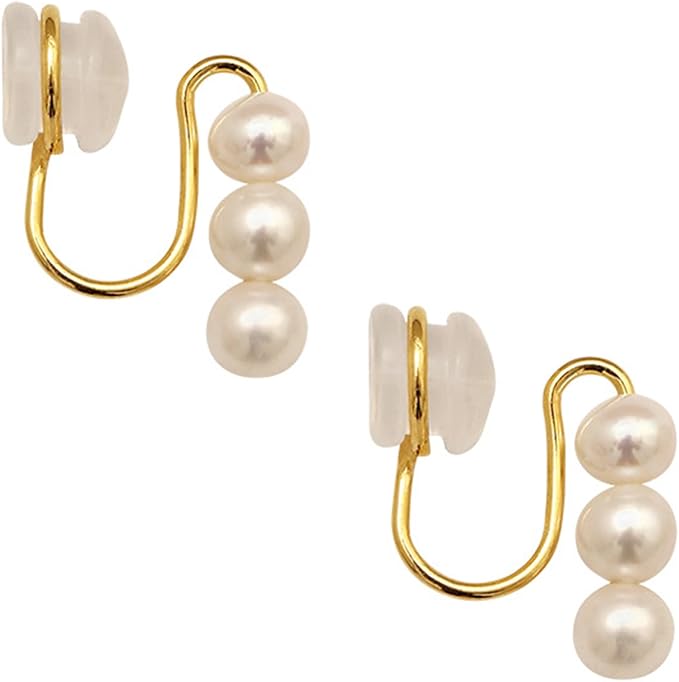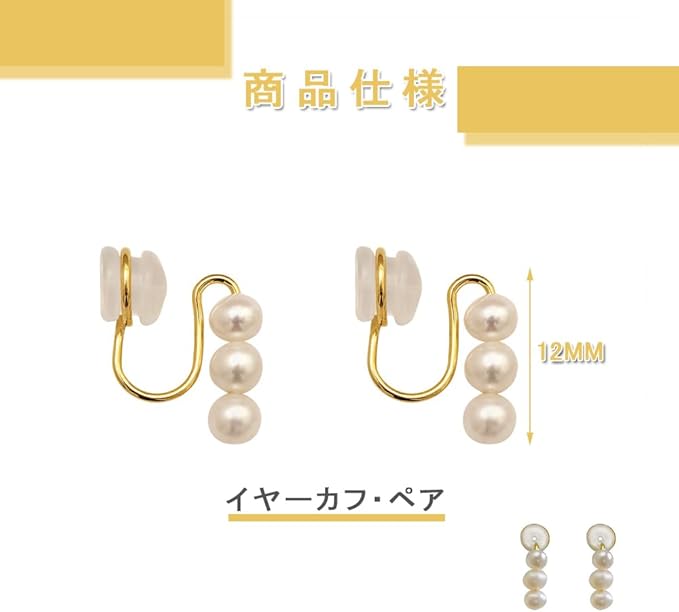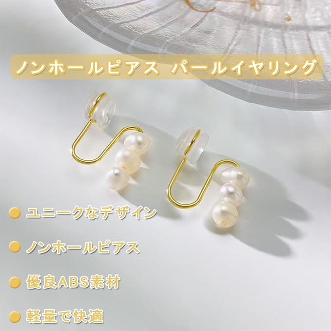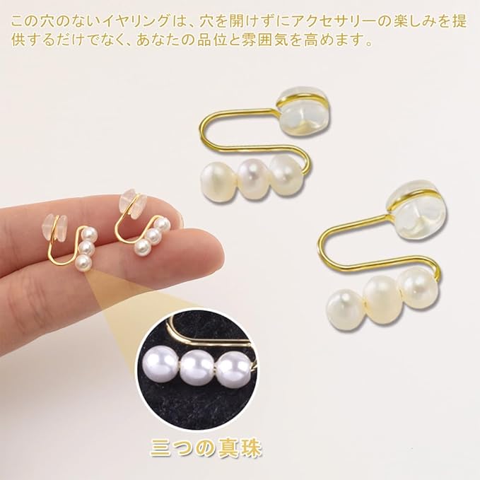 ノンホールピアス パールイヤリング 3連 痛くない ノンホール 可愛い おしゃれ ホワイト ピアス穴不要 プレゼント 誕生日 女性