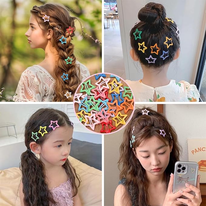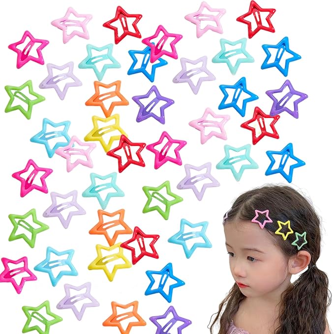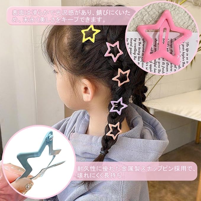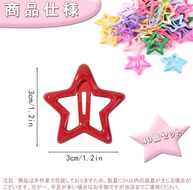 ヘアクリップ 星 前髪クリップ パッチンピン 40個セット 可愛い y2k かわいい カラフル 星型 女の子 髪飾り 髪留め 入学 誕生日 プレゼント(マルチカラー)