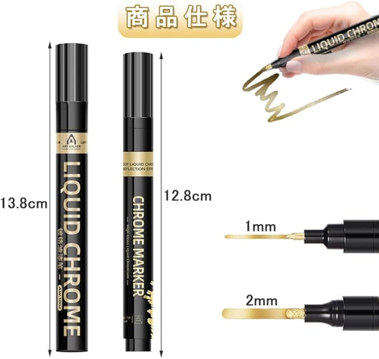 金メッキ 補修ペン ゴールドマーカーペン 2個セット DIY用品 塗るだけでメッキ 高光沢液体クロムペイントマーカー 長持ちする色 防水反射光沢メタリック 布 セラミック ガラス 木材 金属用 (ゴールド 1mm+2mm)
