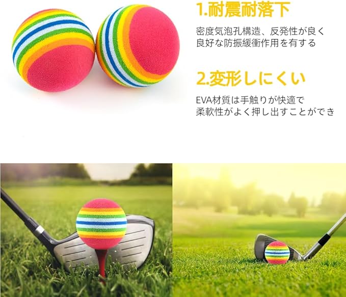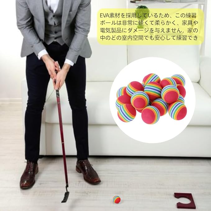 【安心の練習】EVA素材を採用しているため、この練習ボールは非常に軽くて柔らかく、家具や電気製品にダメージを与えません。家の中のどの室内空間でも安心して練習でき、ボールの衝突による不必要な損傷を心配する必要がなく、ゴルフテクニックのトレーニングに集中できるようになります。
