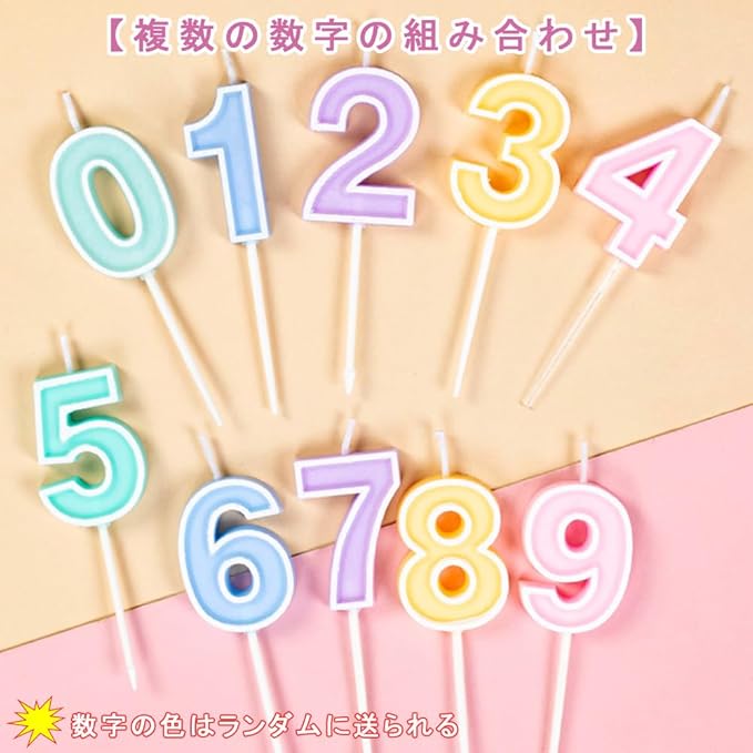 【商品仕様】サイズ:3.8*2.6cm、設定内容:0~9の数字計10個、色とりどり。キャンドルの色はランダムでお送りします。