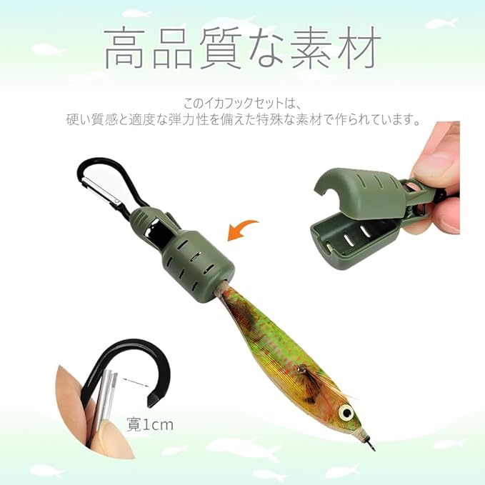【高品質な素材】このエギ針カバーは、固くても適度な弾力を持つ特別な素材でできています。長期間使用しても簡単に損傷することなく、フックを守ります。潮風や直射日光にさらされ続けても、ひび割れや変色が起こりにくい丈夫さで、何度使っても形が崩れません。