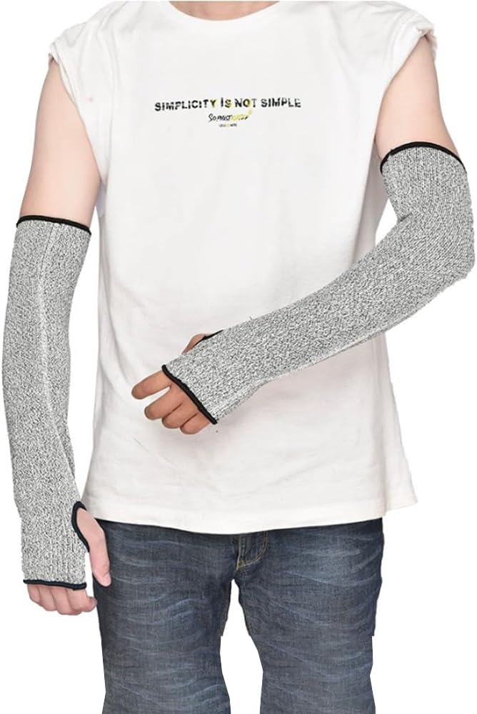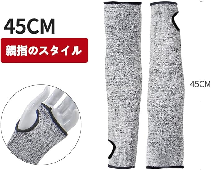 [QIKEJI] 防刃アームカバー 作業用 1足セット 耐切創レベル5 指穴付き けが防止 刃物対策 アウトドア 大工 園芸 耐摩耗 安全防護 防災 農作業 工場 うんぱん 男女兼用