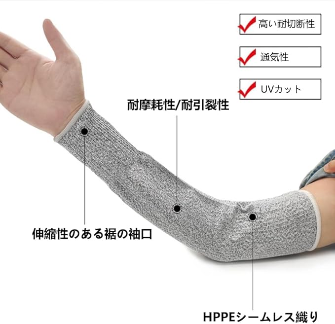 【主な用途】・ガラス片や鋭利刃物の接触リスク軽減・木工・金属加工時の腕部保護対策・園芸作業中の枝やトゲからの外傷防止・屋外作業時の擦過傷予防補助・ペットケア時の引っかき傷軽減