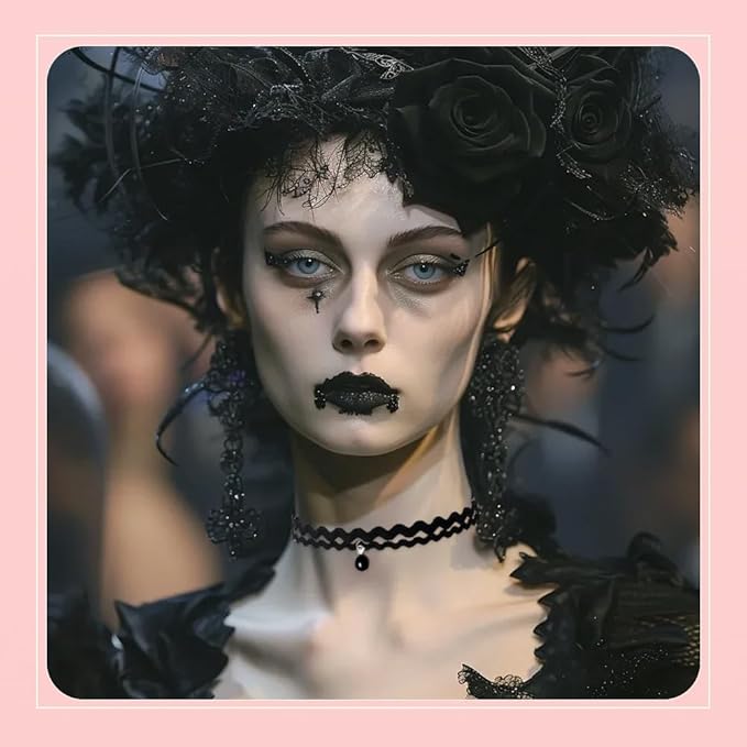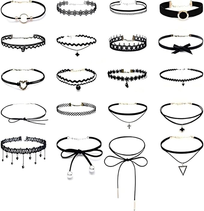 [QIKEJI] チョーカー ネックレス 黒 20点セット シンプル おしゃれ 伸縮タイプ 調整可能 ペンダント付き レディース choker リボン作り ゴシック様式 ロールプレイング
