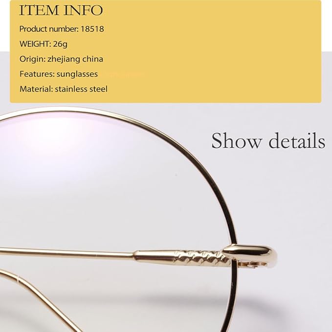 大きめフレームの丸メガネです。 華奢で大きめフレームがすっきりと小顔に見せてくれます。 ラフな服装からフェミニン系まで合わせやすいアイテムです。 男女ともにお使いいただけるデザイン。 専用キャリングポーチ付き。