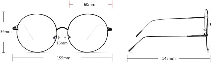 [QIKEJI] 丸メガネ 無地メガネ スタイリッシュ ユニセックス ステンレスフレーム 超軽量 黒 1個