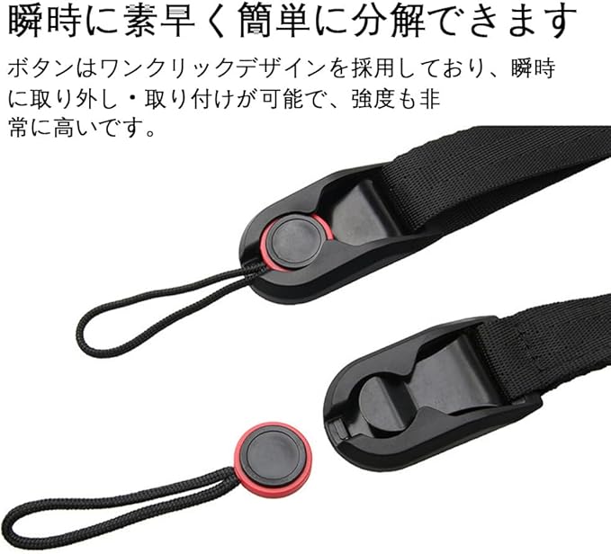 カメラストラップ カメラストラップ 首掛け カメラストラップ 落下防止、ユニバーサル、自由に長さ調整可能、ワンクリック分解機能を備えています カメラ、デジタルカメラ、一眼レフカメラなどに対応( ブラック )