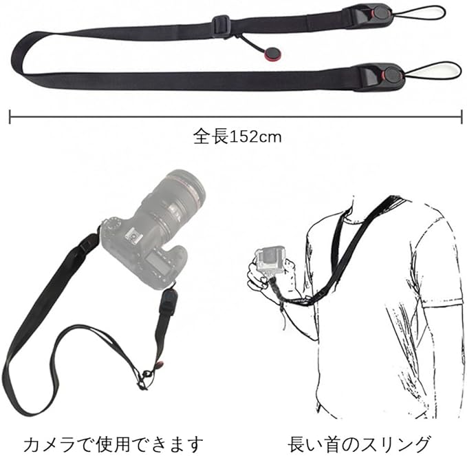 [QIKEJI] カメラストラップ 首掛け 落下防止、ユニバーサル、自由に長さ調整可能、ワンクリック分解機能を備えています カメラ、デジタルカメラ、一眼レフカメラなどに対応( ブラック )
