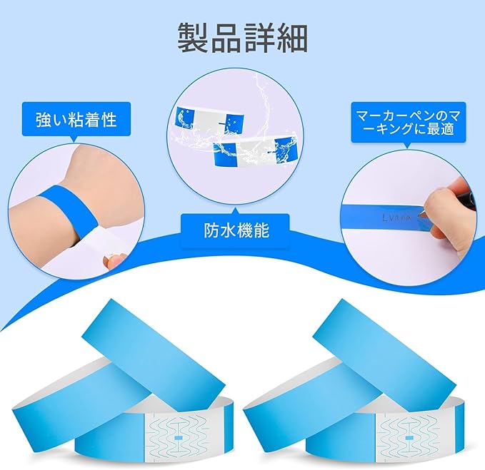 ▶️【水場でも適用】防水機能と耐引裂性に優れた使い捨てリストバンドので、海やプールのイベントでも破れず使用できます。