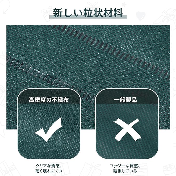 ️ 【高耐久性で安心の耐荷重設計】高密度不織布を使用しているため、耐荷重性と引き裂き強度に優れています。軽い贈り物から少し重めのアイテムまで、安心して収納可能。プレゼントが安全に届くよう、しっかりとサポートします。