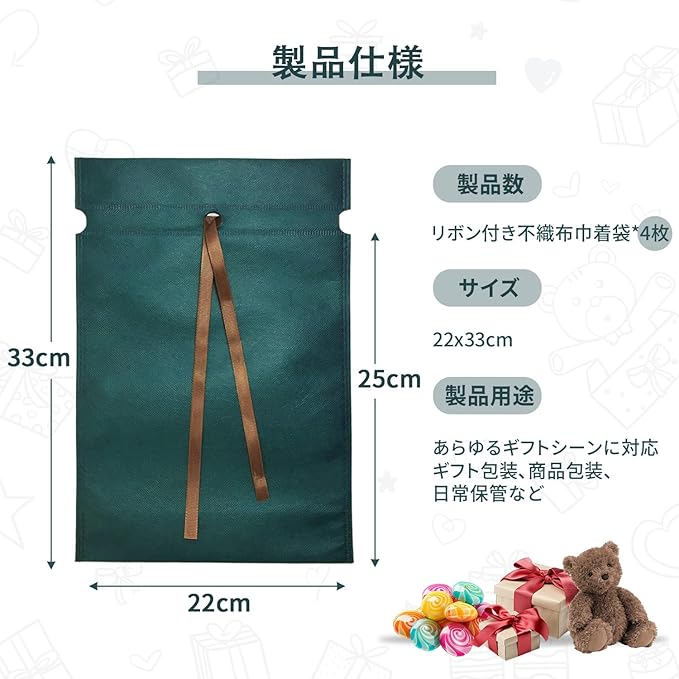 ラッピング 袋 ラッピング 4個セット プレゼント 袋 軽量 耐久性 不織布製 リボン付き ギフト包装 誕生日 クリスマス バレンタイン 記念日 お祝い 母の日 小分け 収納 多用途 繰り返し使用可能 手軽で便利 プレゼント用 贈り物 包装袋