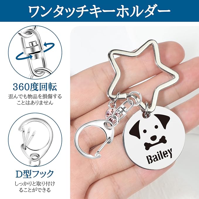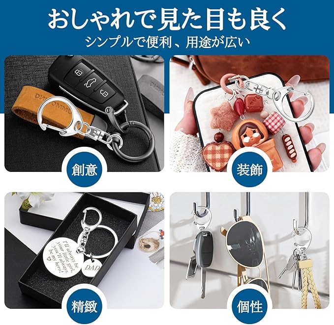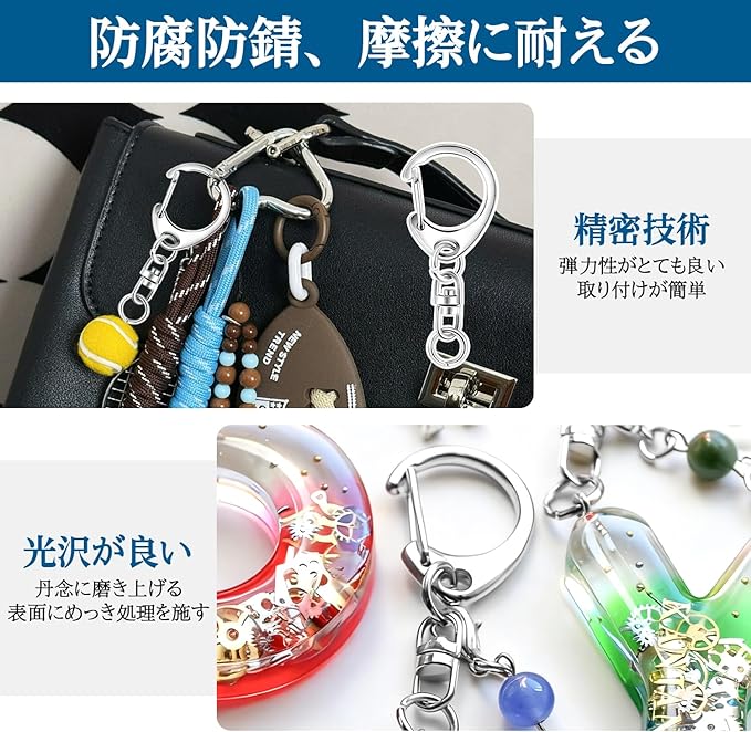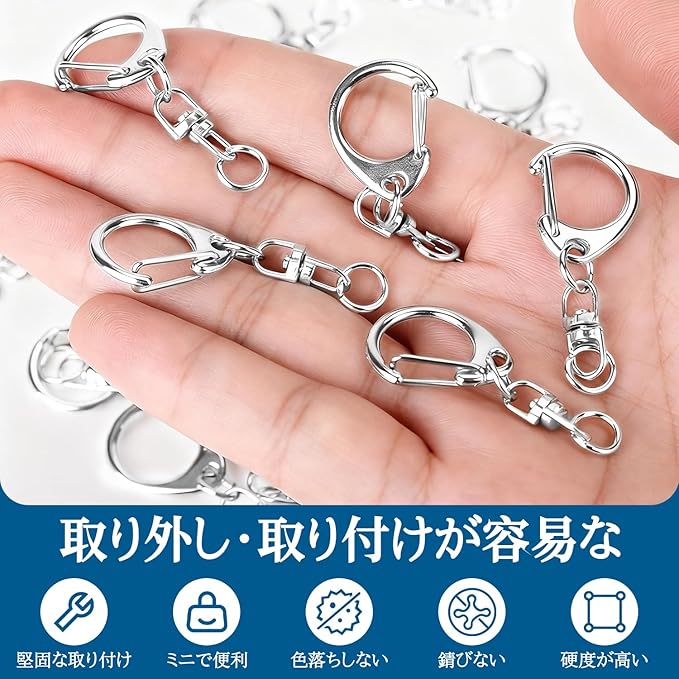 【耐久性】ワンタッチキーホルダーは表面に金属メッキ加工処理されていますので、錆びにくく、耐変色性にも優れています、バネ性も良く、頑丈で変形しにくいです。