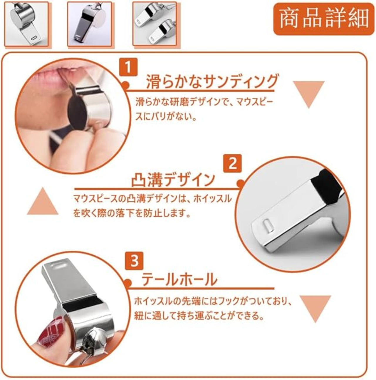 使用範囲】このホイッスルは、救助や救援、災害時の警告、審判の笛吹き、ペットのしつけ、危険警告、休日のお祝いなど、非常に幅広い場面で使用することができます。