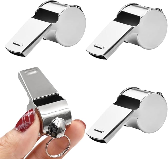 【商品説明】多目的ホイッスル、シルバー色、3個入り。