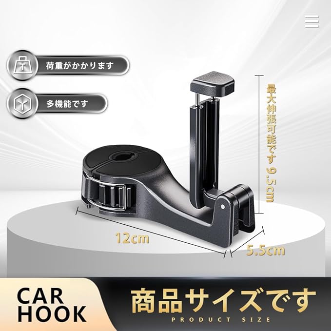 【省スペース】ヘッドレストシャフトに通してカチッと固定するだけで簡単に取り付けられ、ハンドバッグ、ショッピングバッグ、帽子、傘などのアイテムを掛けるのにも役立ちます。車のスペースの外へ。