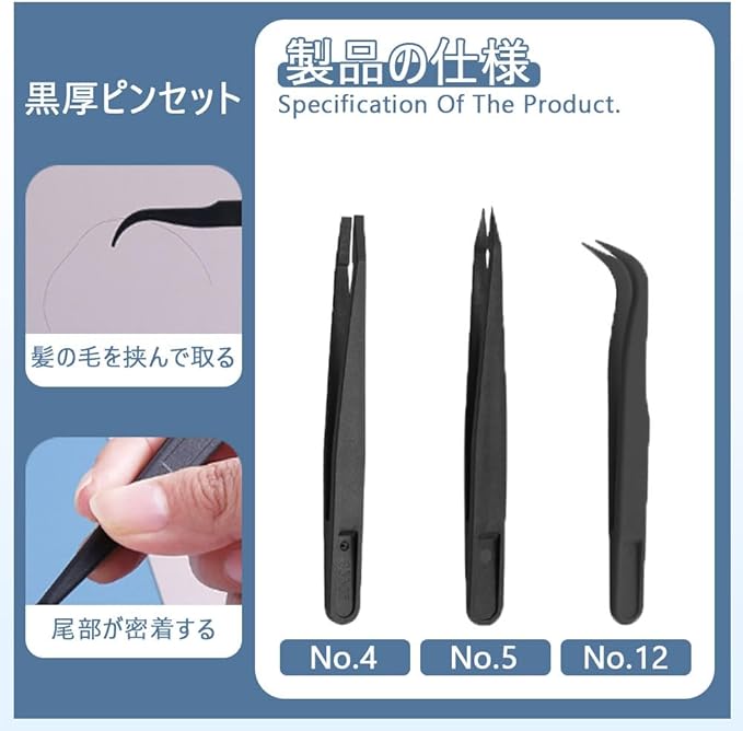 【製品の特徴】 3 種類のクリップ形状で、四角・尖った先・弧状、用途別に使い分け可能。 PP プラスチック素材で、軽量かつ耐久性に優れ、無毒・無害・無臭。 尾部が密着し、髪の毛を挟んで取るなど、細かい作業もしっかり対応。