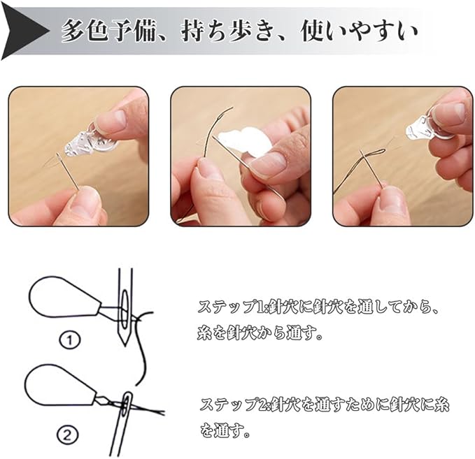 【高品質な素材で長持ち】セット内の針やハサミ、糸などは、耐久性に優れた高品質な素材を使用しています。針は錆びにくく、ハサミは切れ味が長持ちする設計で、繰り返し使用しても性能が落ちません。また、糸は強度が高く、ほつれにくいため、長期的に安心して使用できます。