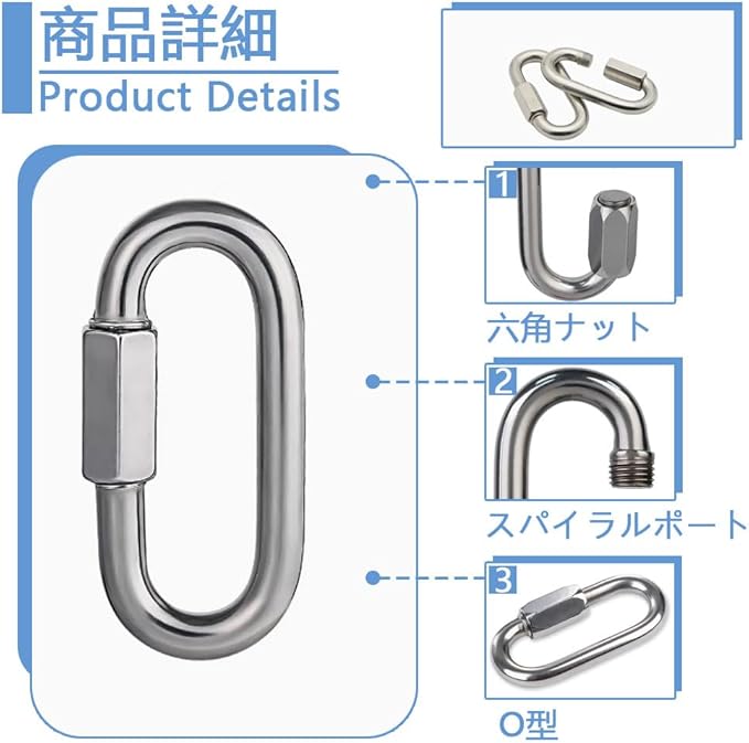 【素材】リングクラスプの本体はステンレススチール製で、耐食性、耐錆性に非常に優れています。 同時に、非常に優れた耐荷重性を持っています。