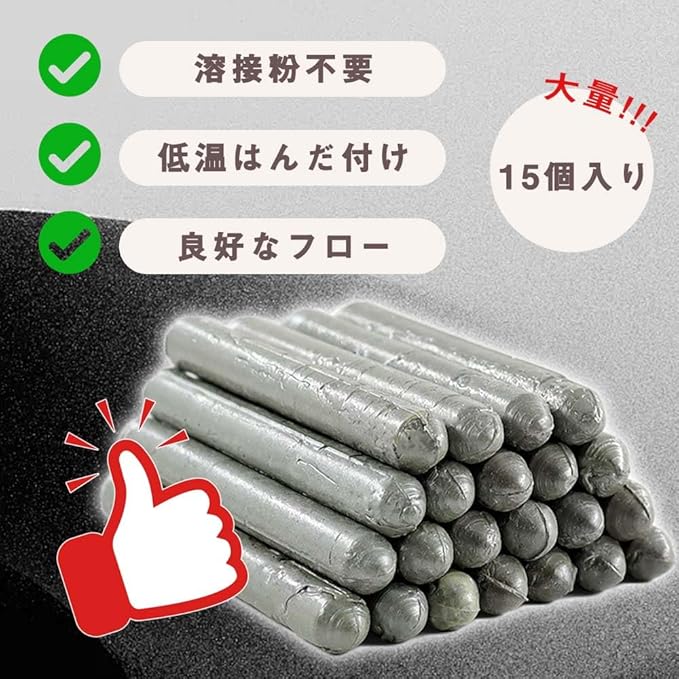 ステンレス溶接棒 溶接棒 ライターで溶接 低温溶接棒 溶接棒 3秒で溶ける ステンレス用溶接棒 低温溶接棒セット 低温溶接補修ツール 低温ハンダ万能家庭用溶接棒 アルミはんだ付け溶接棒 銅、鉄、アルミニウム、ステンレス鋼、水槽、塩ビパイプなどに適用 簡単な操作 15本セット