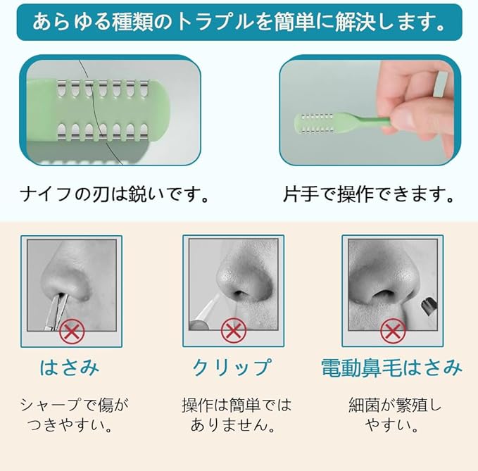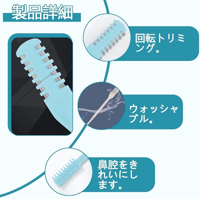 【製品の特徴】鼻毛はさみは両端のデザインで、上部のヘッドは痛みなく360 回転させて鼻の毛をカットでき、下部のヘッドは柔らかく、鼻腔の掃除が簡単です。