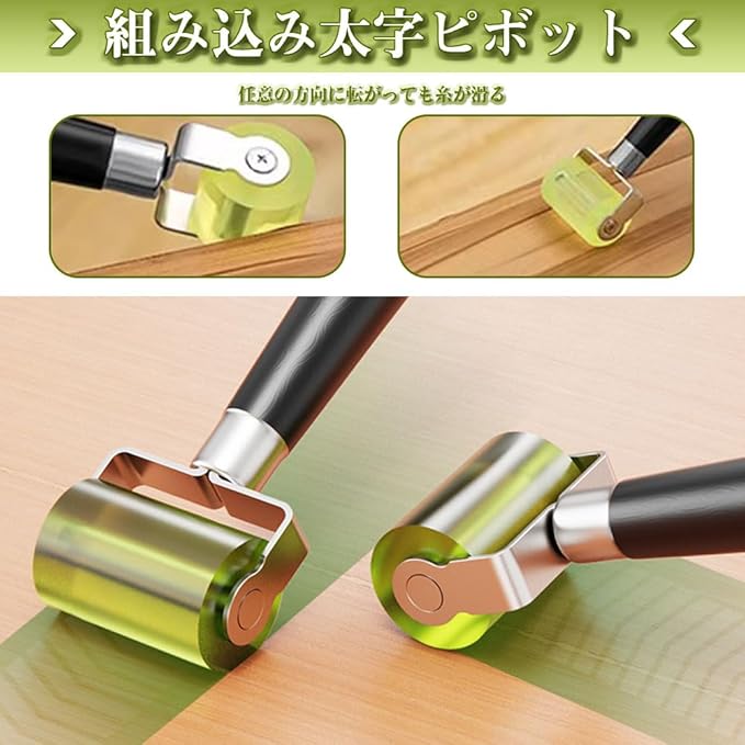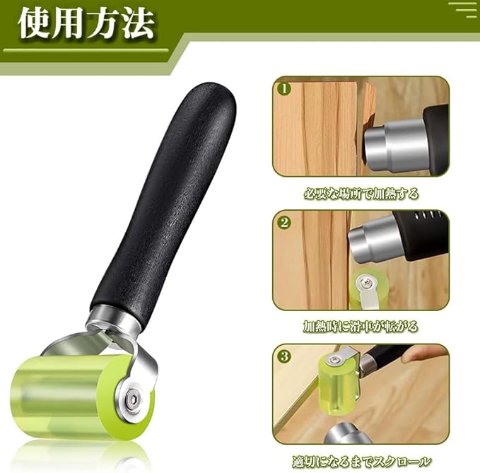 【使いやすさ】ゴム製のローラー部分が均一な圧力をかけられるため、気泡やシワを防ぎながら、しっかりと素材を密着させます。片手で簡単に操作でき、初心者でも扱いやすい設計です。