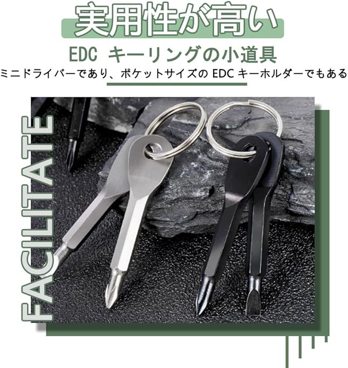 ミニドライバー 多機能 2個入り グレー ブラック ドライバー キーホルダー 工具キーホルダー クロスヘッドねじ回し スリットねじ回し