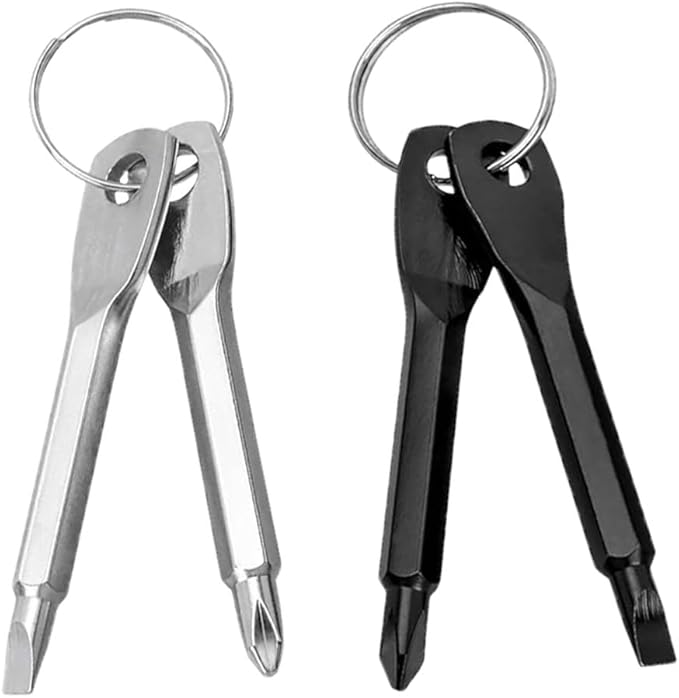 これは鍵型ドライバーセットで、クロスヘッドとスリットヘッドが各1本ずつ入っています。コンパクトなサイズで、キーホルダーにも使える便利なツールです。