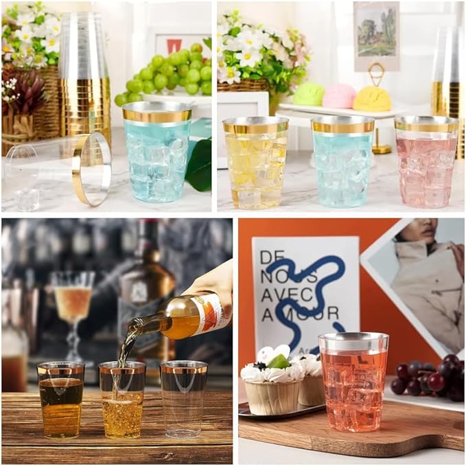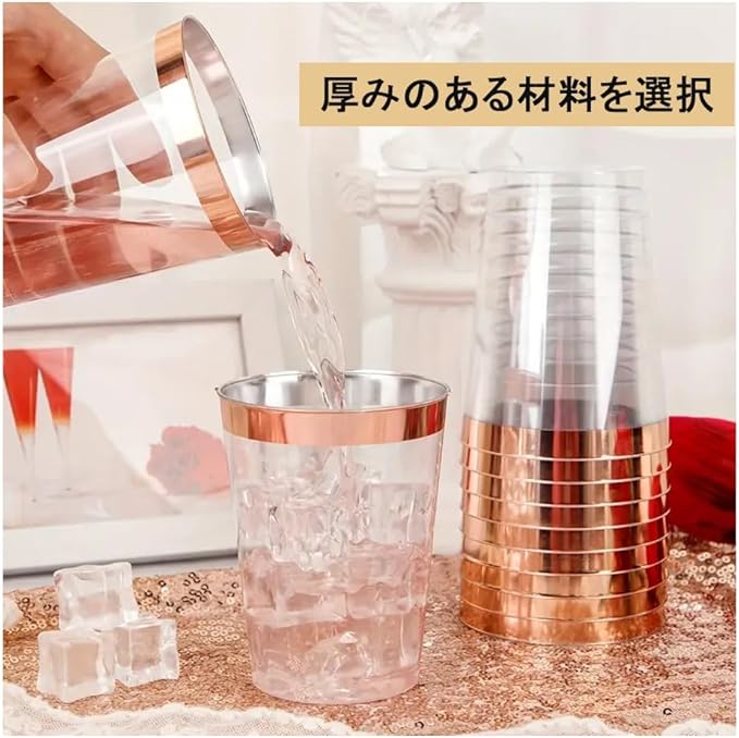 50個 プラスチックカップ 300ML 西洋料理 10oz 透明プラスチック 使い捨てハード(ローズゴールド)
