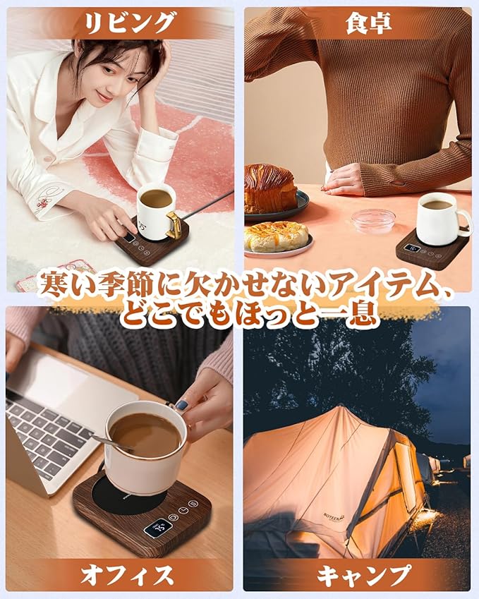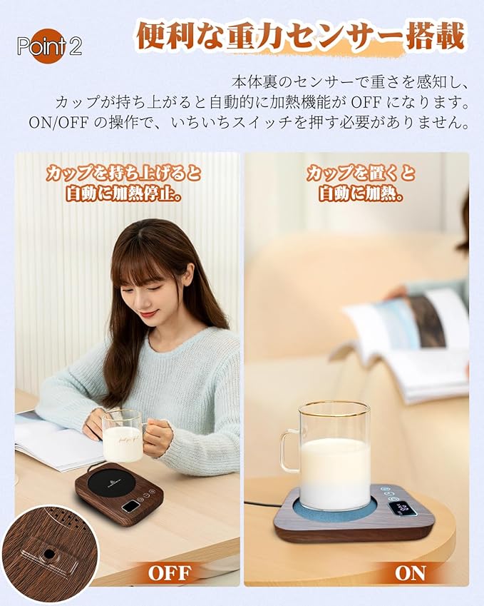 【ずっと温かい】 カップウォーマー コーヒーウォーマー 重力センサー カップヒーター 保温コースター コーヒーカップウォーマー 温度調節 最大85℃ タイマー マグカップ ウォーマー 卓上 デスク コップ 保温器 飲み物 ドリンク プレゼント 木目