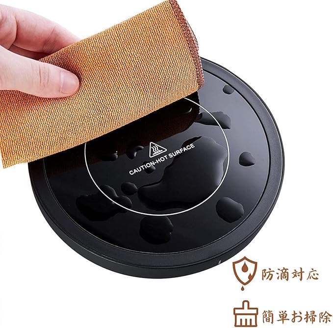 【広い加熱面積】目立ちすぎない黒いガラス面は、大きなカップやマグカップ用に対応できるよう設計されています。加熱面積13cmは、ほとんどのコーヒーカップに対応する大きさです。36Wの電力は、過度の放熱を避けながらも、大きなカップに適しています。防滴仕様となっており、お手入れも簡単です。PTCヒーターは、マグカップの温度を一定に保ち、消費電力も少ないのが特徴。ヒーターチューブと異なり、加熱しても赤くならないので、安全で耐久性に優れています。