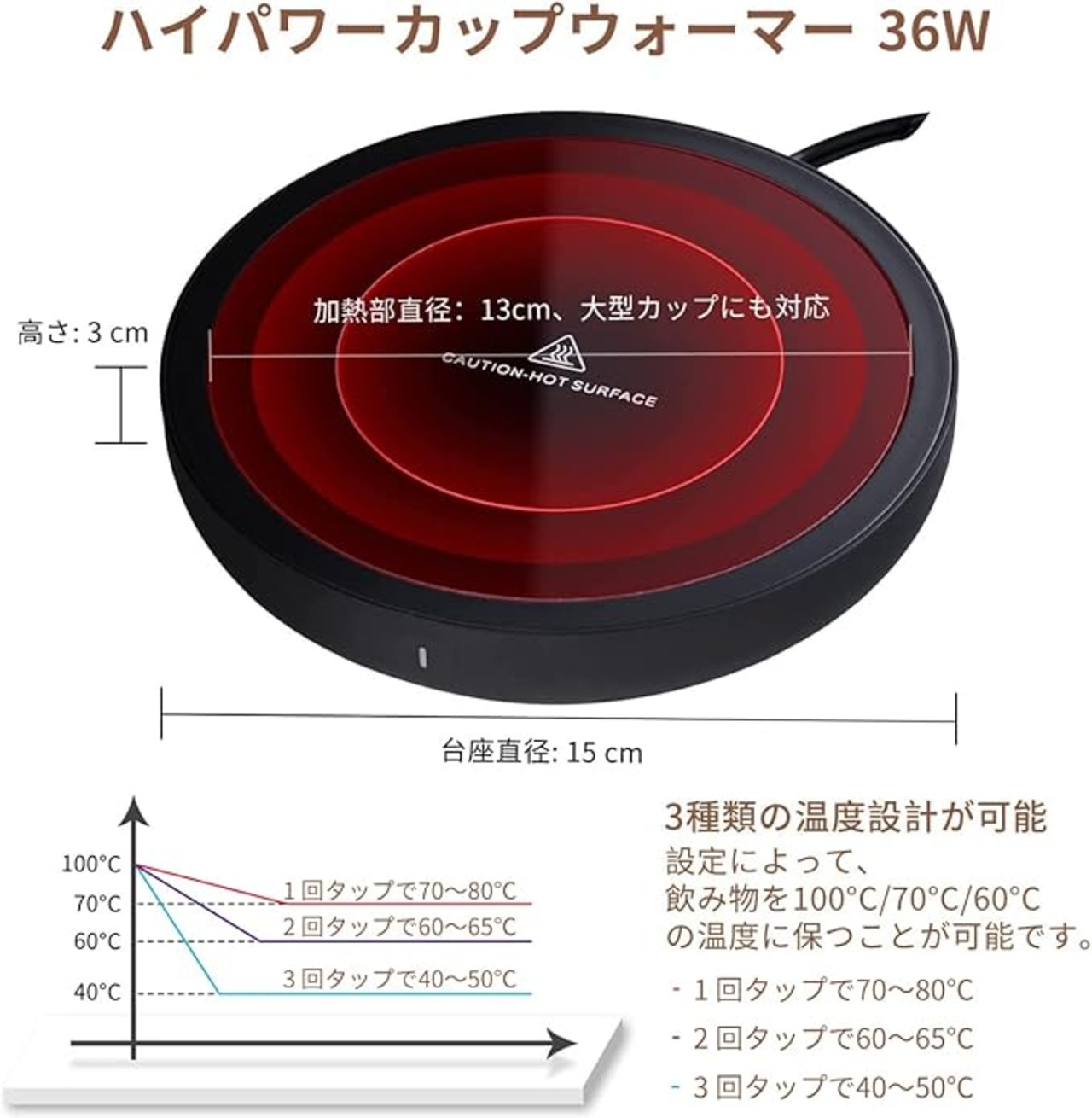 ポカロティー カップウォーマー 保温コースター 卓上用ウォーマー 保温器 コーヒーサーバー用 お茶 コーヒー 牛乳 ドリング 飲み物 飲料 水 家庭用 オフィス 親友プレゼント 防寒対策 三段階温度調節 4時間自動電源OFF (黒い)