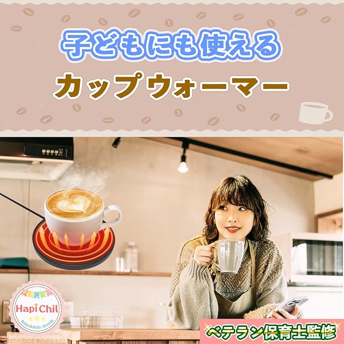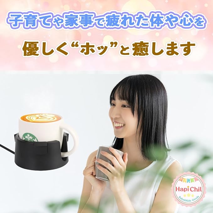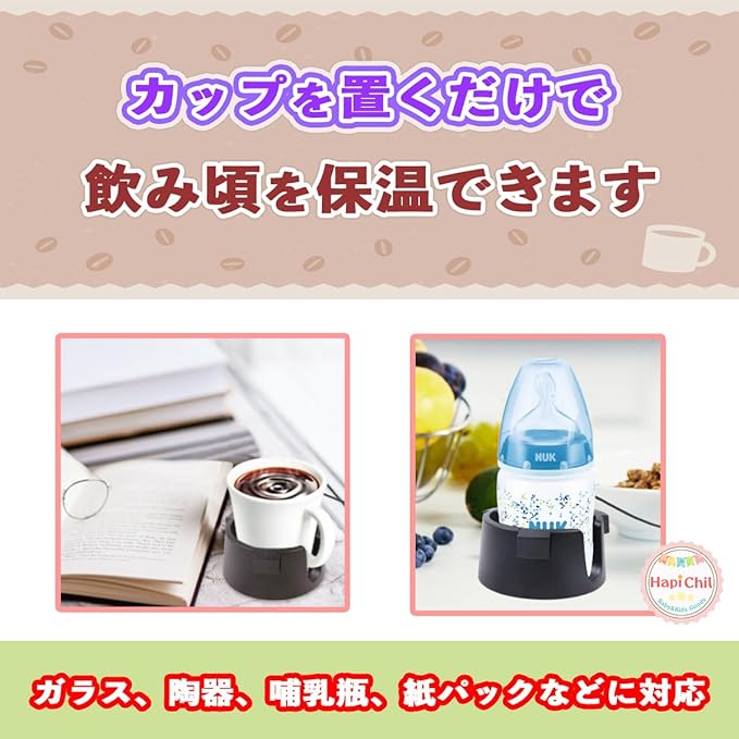 ママ&ベビー カップウォーマー 【保育士セレクト】 自動保温 ドリンクウォーマー 哺乳瓶対応 USB ヒーター 転倒防止ホルダー付き (ホワイト)