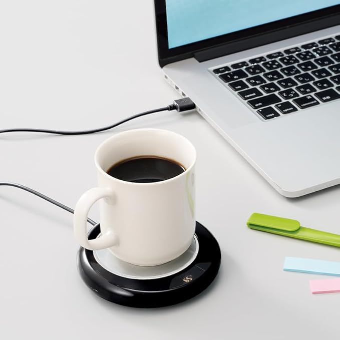 飲み物をあたたかな状態をキープしてくれるカップウォーマーです。 USBに接続して使用することで、オフィスやご自宅での作業時や休憩中、飲み物が冷めてしまうのを防いでくれます。 電子レンジを使用するより少ない電力で飲み物の温度をキープできるため、節電にもつながります。 また、3段階の温度調整が可能なのでお好みの温かさでご使用いただけます。 ブラック、ホワイトのシンプルな2色展開になります。
