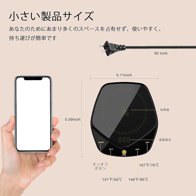 コーヒーマグカップウォーマー、温度制御スマートカップウォーマー、コーヒーウォーマー、ドリンクウォーマー、紅茶、水、ミルクを温めるための電気ティー&エスプレッソ飲料ウォーマー 、デスク用自動シャットオフ(ブラック)