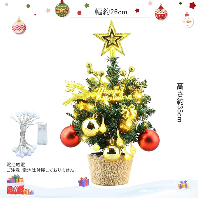 【2025新登場】 クリスマスツリー 卓上 北欧 おしゃれ ミニツリー 高さ38cm DIY可能 人工松 クリスマス装飾 タイマー機能 電池式 LEDイルミネーションライト 人工 クリスマスつりー 小さめ デスクライト インテリア プレゼント 雰囲気 デコレーション 高級 雰囲気 商店 部屋 プレゼント ギフト 贈り物 ミニクリスマスツリー christmas tree 38x26x26cm