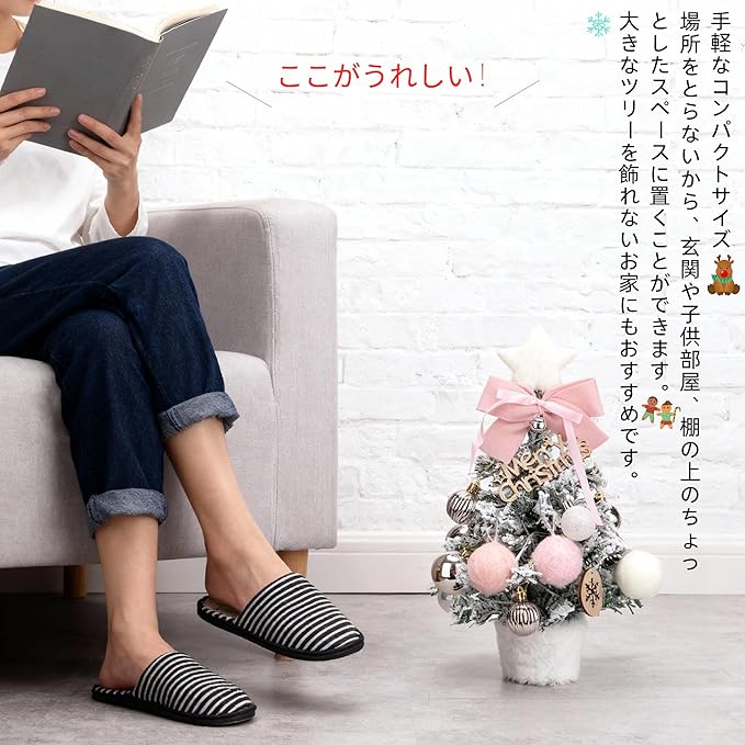 【きれいな完成品】組み立て不要ですぐに飾れる卓上ツリー。省スペース設計で窓際・本棚・デスクに最適。家庭用の子供部屋から店舗用ディスプレイまで多場景対応。