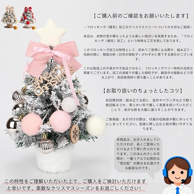 【商品情報】高さ35cm/重量490gのコンパクト設計。PVC素材の本体に植毛雪化粧加工。ABSプラスチック台座+ファー調カバーで高級感のあるミニクリスマスツリー。赤・ピンク・ベージュ3色展開。