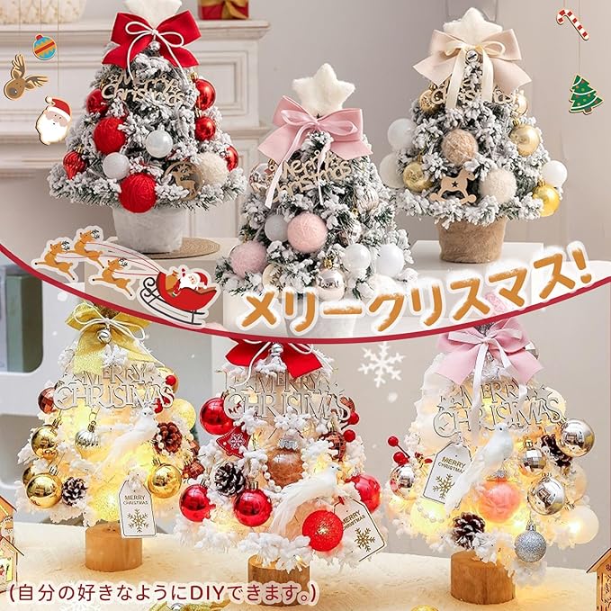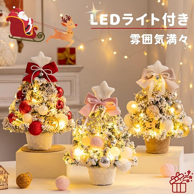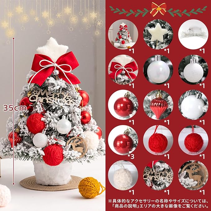 Reelyo【2025新登場】 クリスマスツリー ミニツリー 卓上 35cm LEDライト付き おしゃれ 北欧 高級 雰囲気満々 かわいい 部屋/商店 クリスマス 飾り ツリー プレゼントにも最適 電池式 オーナメント付き 小さめ 工具不要 (赤)