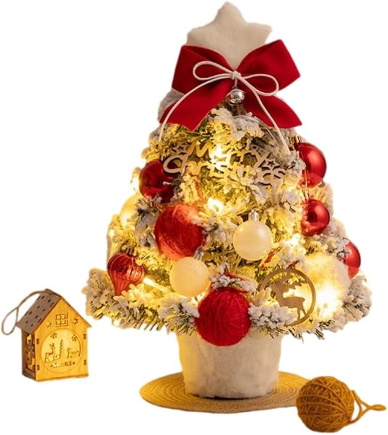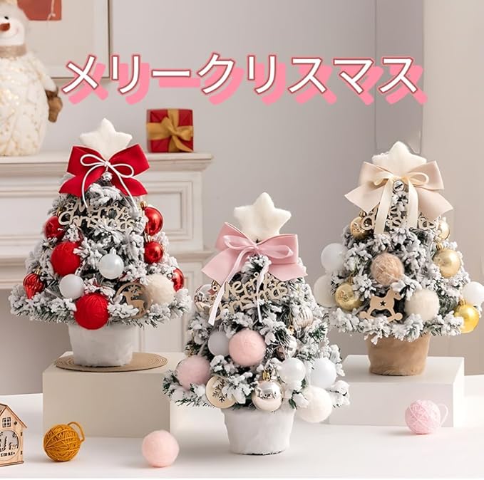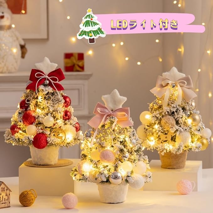クリスマスツリー 卓上 ミニツリー 北欧 35cm LEDライト付き 飾りつけ 組立簡単 雪化粧 電池式 卓上ツリー 小さめ クリスマス 飾り 置物 かわいい 雰囲気満々 ギフト (赤)