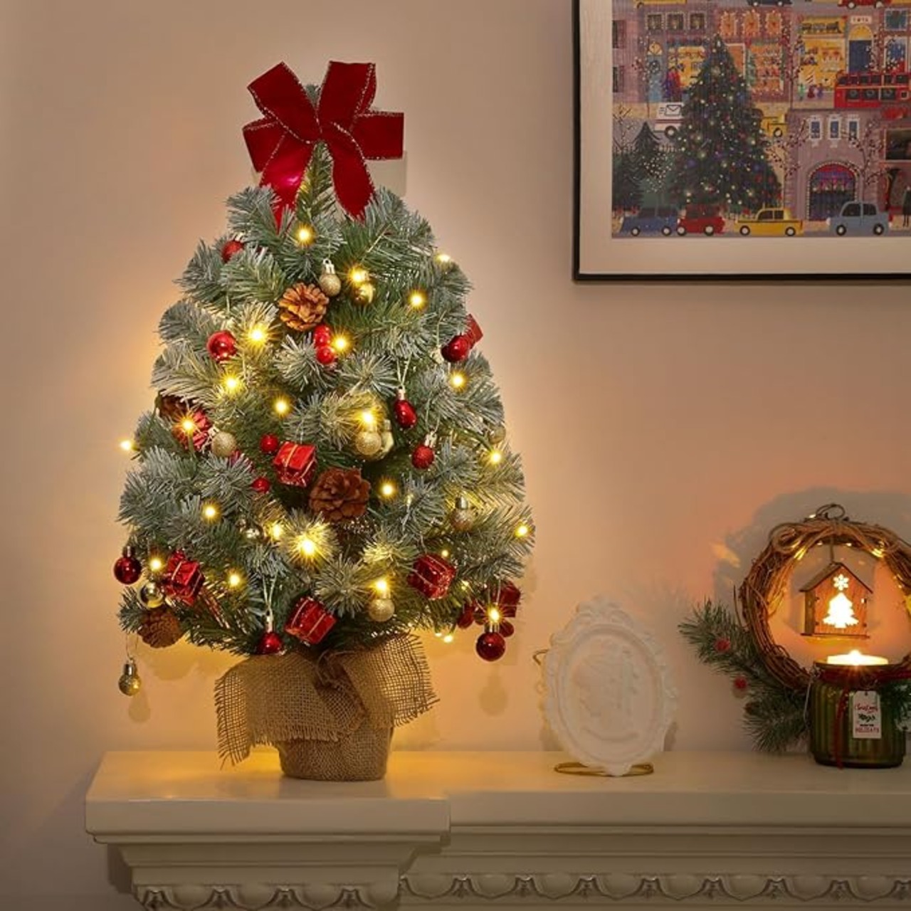 「特別デザイン:クリスマス気分満載」 クリスマスつりーの形を採用し、複数の多彩なデコレーションがあるし、イルミネーションライトと組み合わせるミニツリーです。光りがやさしく灯ると、幻想的な雰囲気を作り出すLEDが、綺麗に見映えてきて、気分が一気に盛り上がてくれて、クリスマスの夜をより一層華やかに彩ります。
