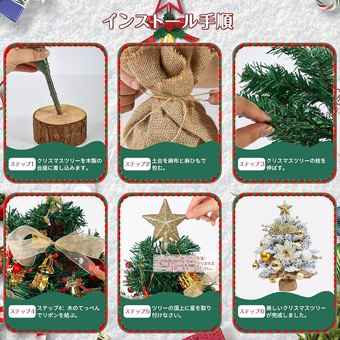 【どんな場所にもぴったり】このかわいらしいテーブル用クリスマスツリーは、クリスマス気分を盛り上げてくれます。デスク、ダイニングテーブル、オフィスデスク、窓辺、またはショップの窓辺などに置けば、クリスマスを明るく彩り、ご家族やゲストに素晴らしいクリスマスの思い出を残すことができます。また、ご家族や友人へのクリスマスプレゼントとしても最適です。