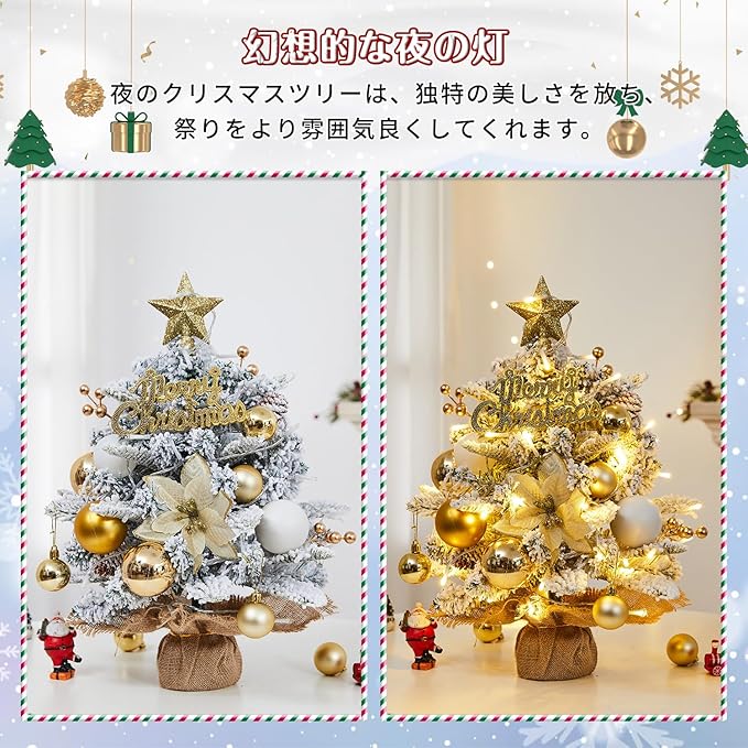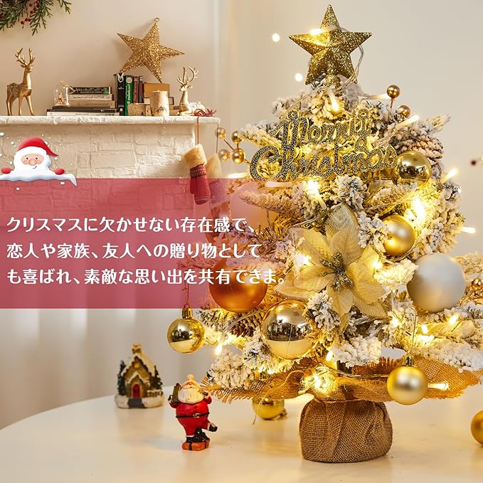 【2025新登場】 クリスマスツリー 卓上 ミニツリー 45cm 雪化粧 卓上ツリー 3mLED飾りライト付き 組立簡単 収納便利 クリスマス飾り セット 豪華 北欧風 屋内 商店 部屋 クリスマスグッズ 日本語説明書付き