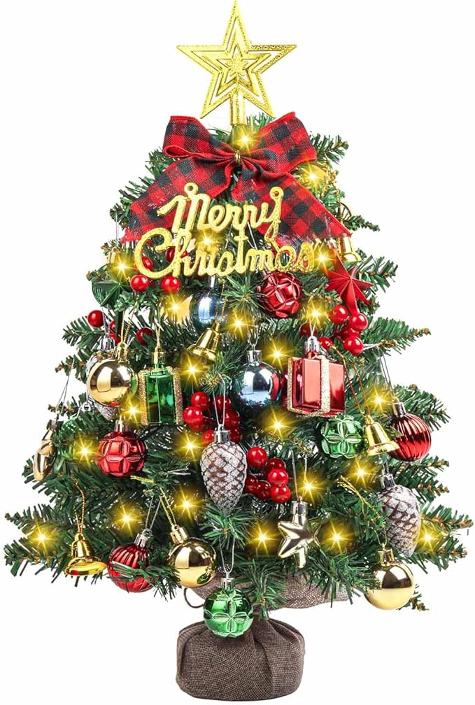クリスマスツリー オーナメント付き LED セット SVNVIOZ グリーン ツリー 50cm ゴールドとレッド 卓上 ミニクリスマスツリー おしゃれ 北欧 高級 リアル 高濃密度 組立簡単
