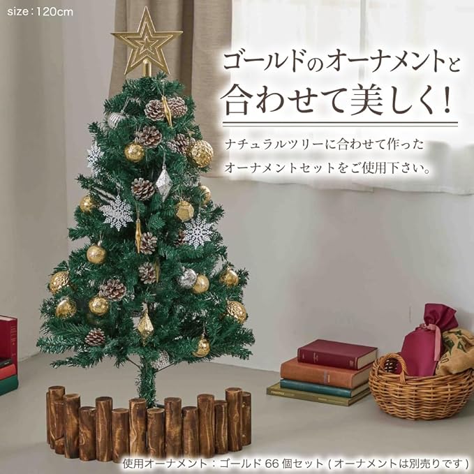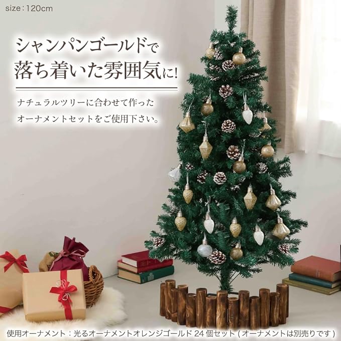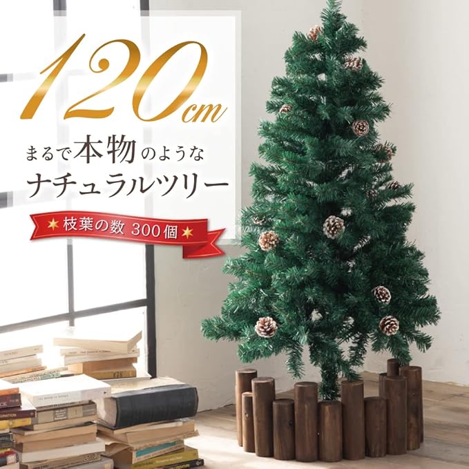 クリスマスツリー 『本物の葉の色を再現したナチュラルツリー』 150cm 120cm 180cm 210cm まつぼっくり 松かさ コンパクト収納可能 (グリーン, 120㎝)