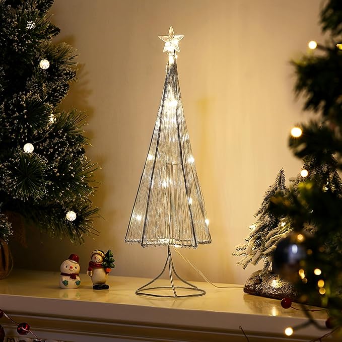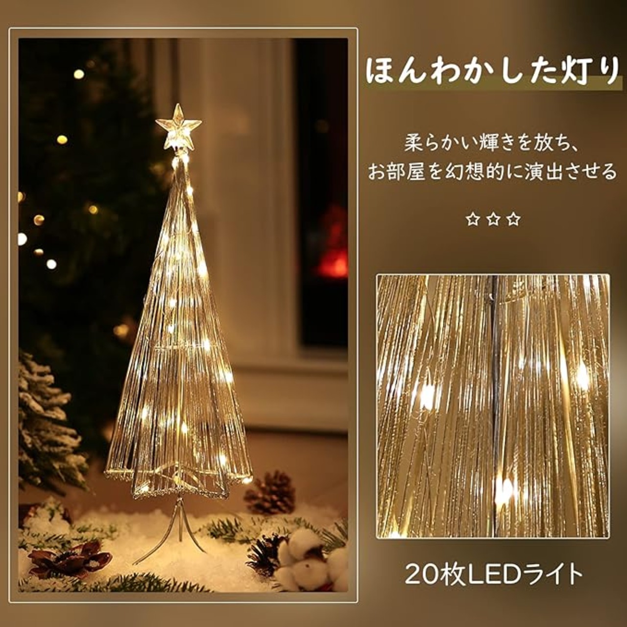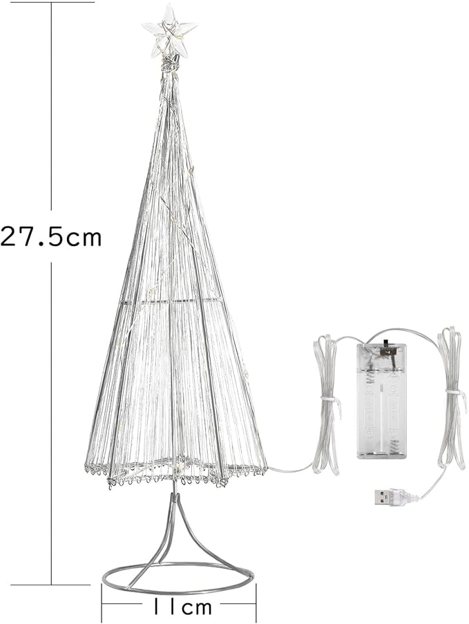 Lewondr クリスマスツリー 卓上ミニクリスマスツリー クリスマス飾り テデスクライト デコレーションライト 置き型 LED内蔵 松ノ木モチーフ 飾りライト インテリア 電池&USB給電式 星オーナメントライト クリスマスライト 母の日/誕生日/祝日/ハロウィン お祝いプレゼント Silver