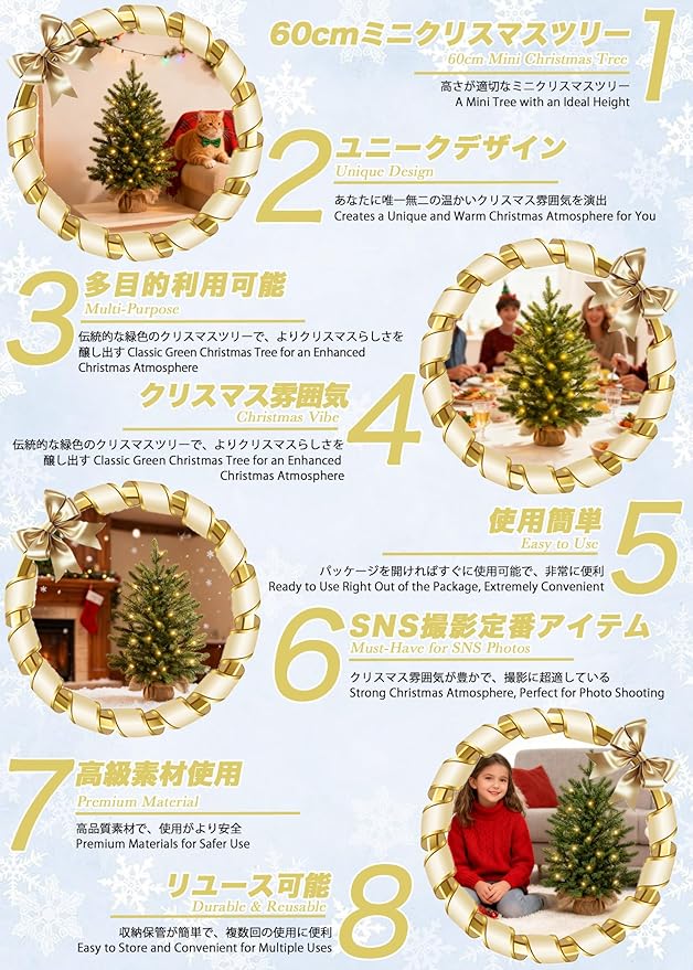 【長期間リピータブル使用 経済的かつ環境に配慮】60cm ミニクリスマスツリーは、耐久性を重視した素材選びと仕上げで製造されており、年間を超えて繰り返し使用可能な設計となっています。本体の無毒性 PVC 素材は、経年劣化に強く、長期保管後も色褪せたり脆くなったりすることが少なく、毎年クリスマスシーズンに取り出しても、初めて使用した時のような鮮やかな緑色と立体的な形状を維持できます。また、ハンドメイドで調整された枝は、繰り返し広げたり畳んだりしても、元の形状を保ちやすく、脱落や破損のリスクを抑えています。リネン製のベースも、適度な手入れ(汚れた場合は柔らかい布で軽く拭くなど)をすれば、長期間質感を保ち続けます。使い捨てのクリスマスデコレーションと比べ、繰り返し使用することで長期的に経済的なメリットがあるだけでなく、廃棄物の削減にも貢献し、環境に配慮した選択肢としても優れています。さらに、毎年同じツリーでクリスマスを過ごすことで、家族やペットとの思い出と結びつけることもでき、特別なシーズンの象徴として愛用できます。