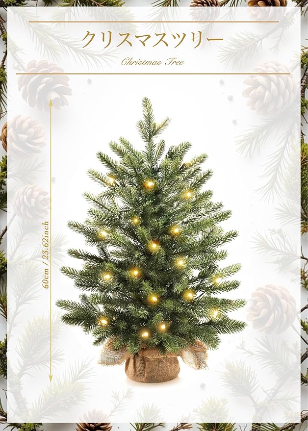 クリスマスツリー 60cm 卓上 人工松 装飾 人工ミニ オーナメント付き おしゃれ 高級 ファイバー 小さめ クリスマスツリー 折り畳み コンパクト 屋外 片付けやすい シンプル バーラップ 北欧風 大きめ 豪華 卓上型ヌードツリー 装飾 60cm Mini Christmas Tree Small X'mas Tree Decorations with Burlap Base