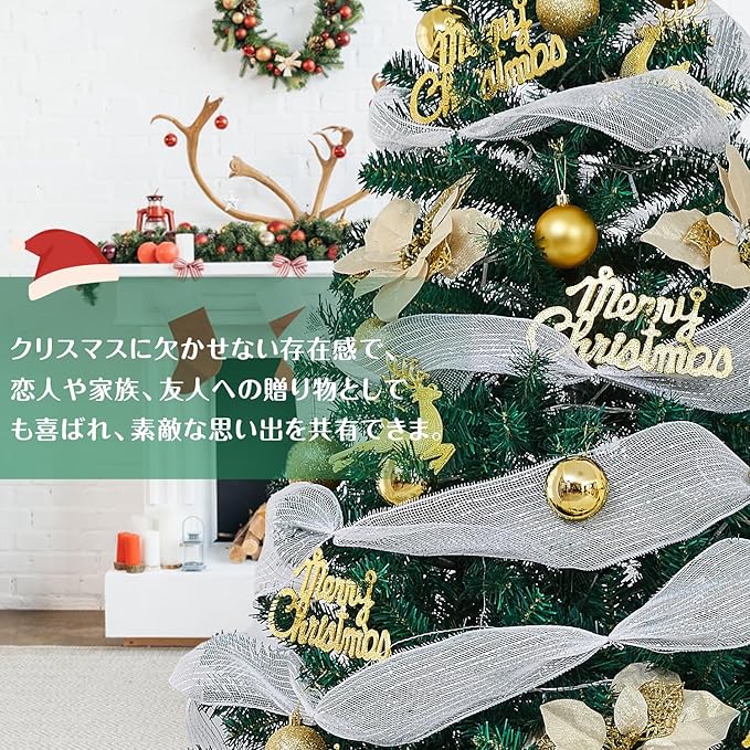 【豪華な装飾と温もりのLEDライト】トップスター、リボン、クリスマスボールなどバラエティ豊かな10種類以上のオーナメントセット付き。さらに、長さ15mの電池式LEDライト(単3電池3本別売)が暖かく優しい光で空間を包み込み、ロマンチックな雰囲気を演出。電池式だから設置場所を選びません!(ペンタグラムの取り付け方法:付属の金色のワイヤーでクリスマスツリーの頂部に固定してください。)